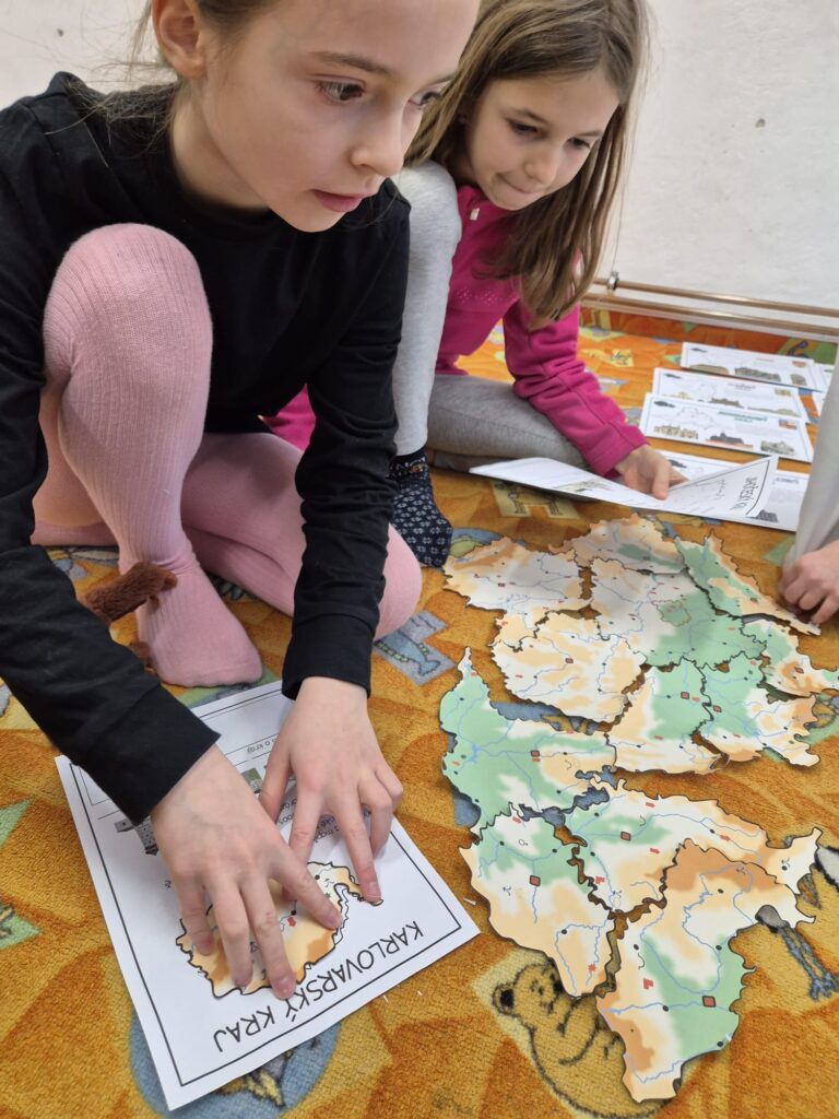 Pokračovali jsme také ve druhé části projektu o České republice. Tentokrát jsme se zaměřili na jednotlivé kraje. Děti zkoumaly jejich zajímavosti, významná města, památky a přírodní oblasti. Pracovaly ve skupinách, řešily úkoly a kvíz a při hrách si nové informace procvičily.